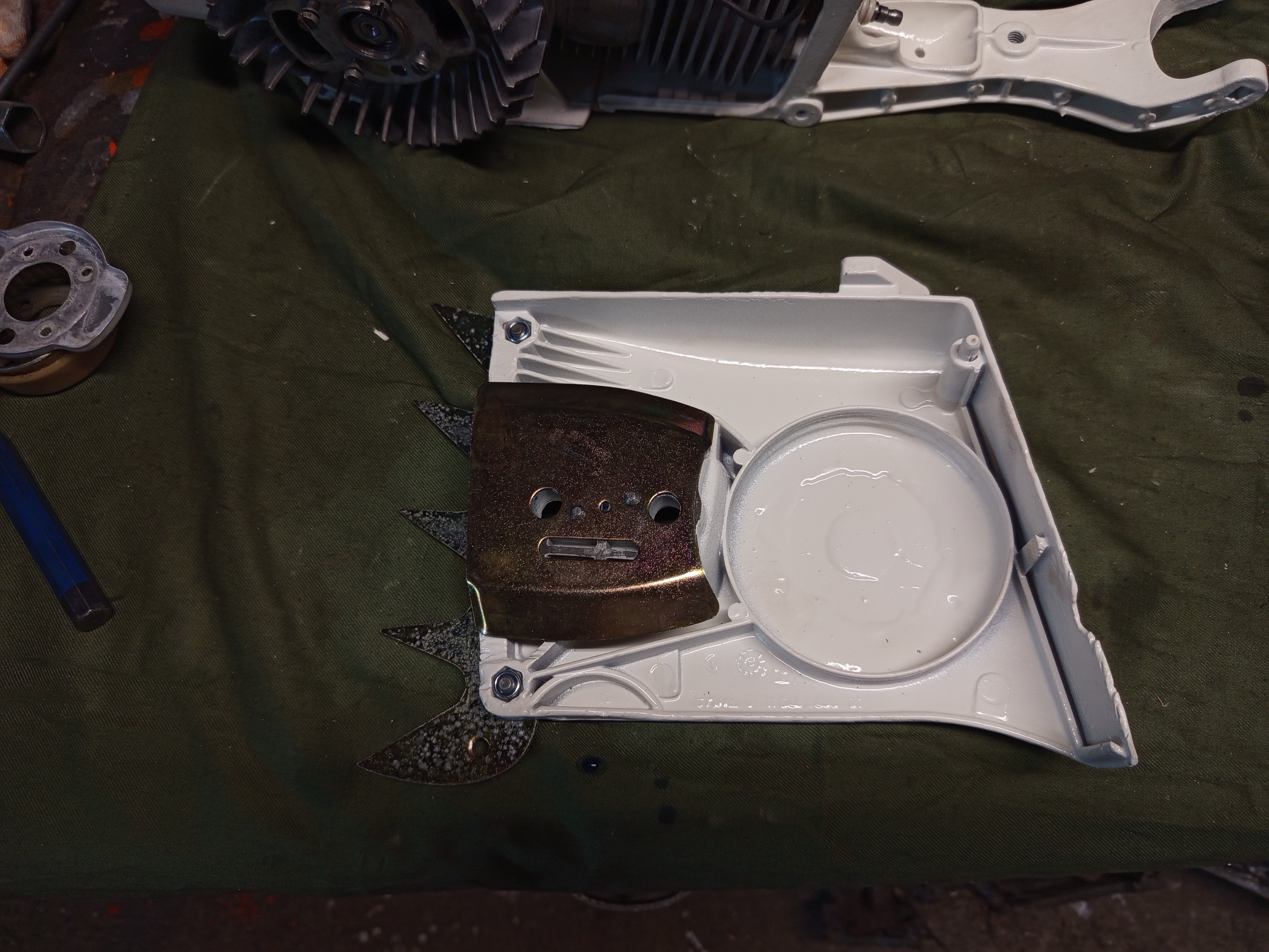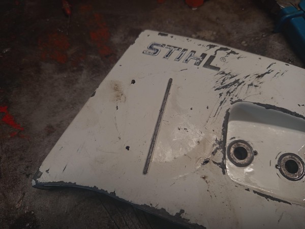 Of course it’s a work machine, and has many scratches and dings, removing them is totally unnecessary for a chainsaw IMO, the only damage that looked bad is on the clutch cover. It looks like the clutch unwound and machined out the material, and thinned it so much that there were some small holes on it.