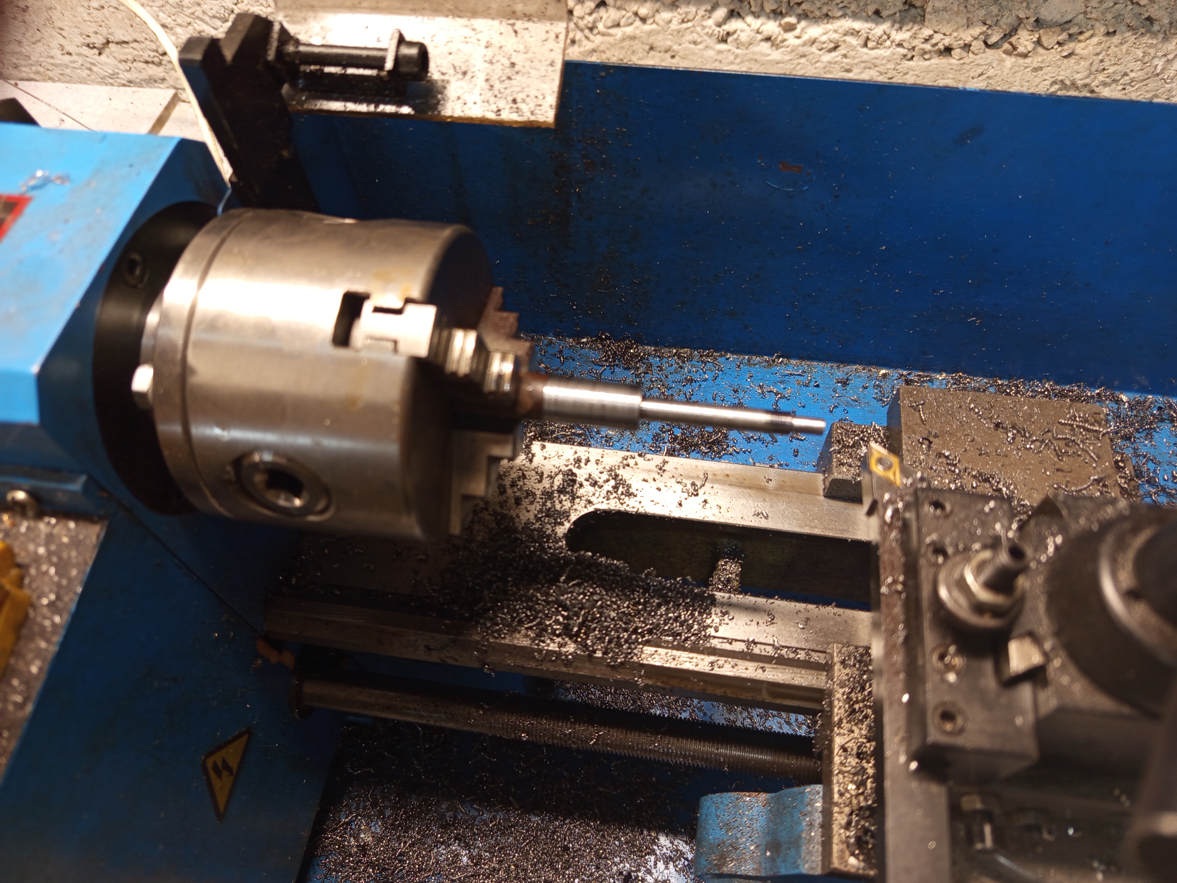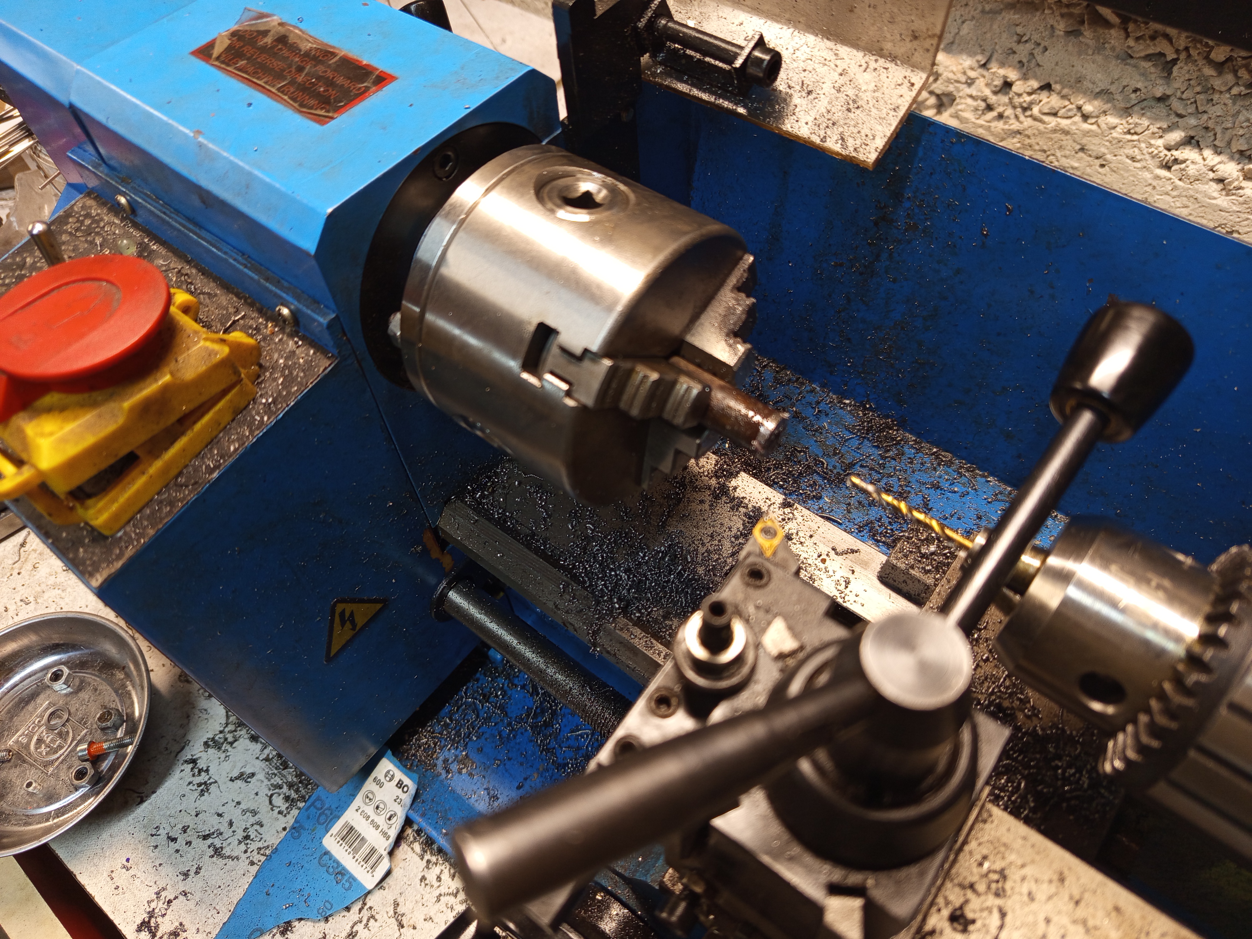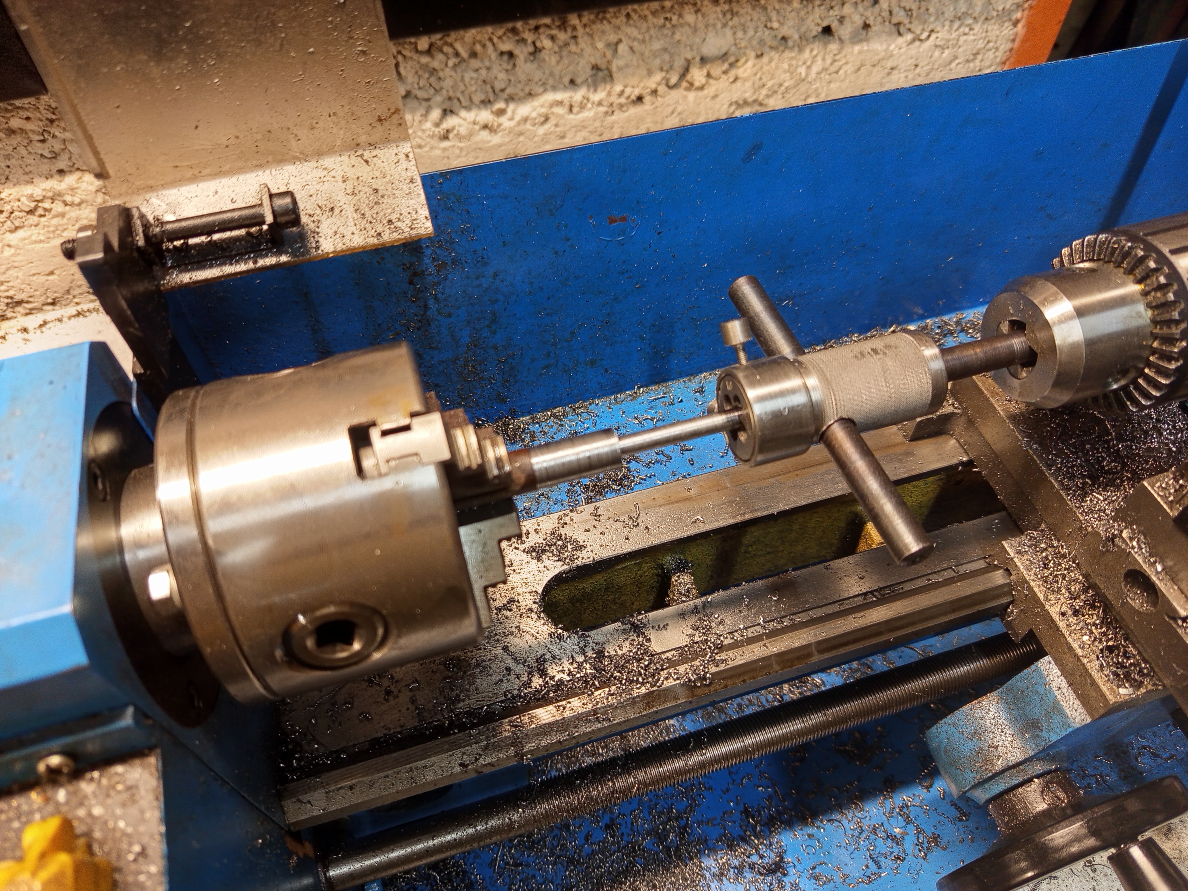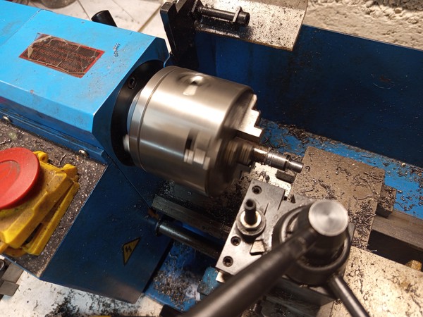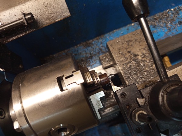 I made the nut from a piece of 12 mm round bar, after roughing out the ODs I parted off, it turned out a bit too long, but it’s okay, just machined off a mill or two. Then scribed roughly where the screw should be, and tapped an M6 thread in it.