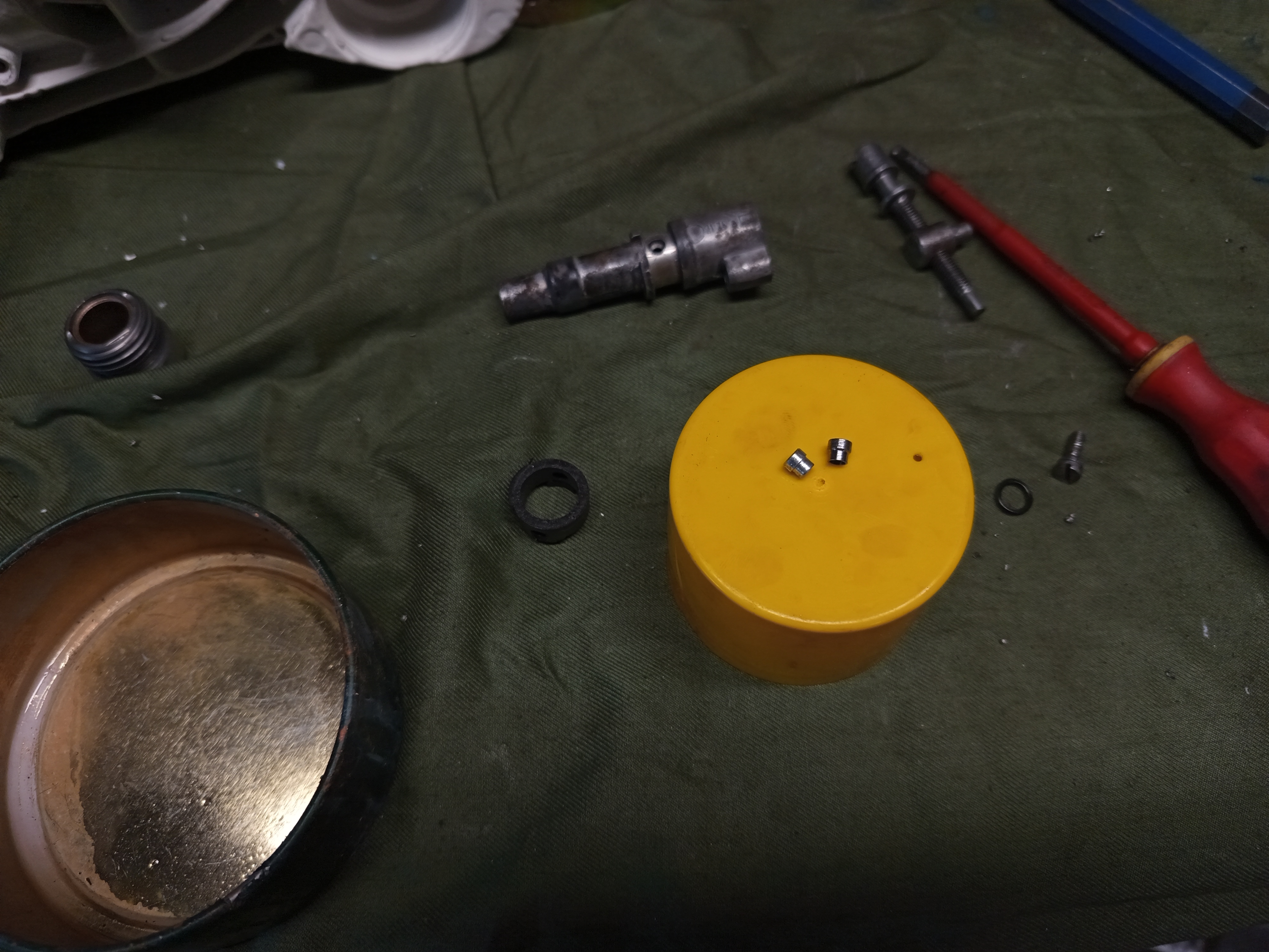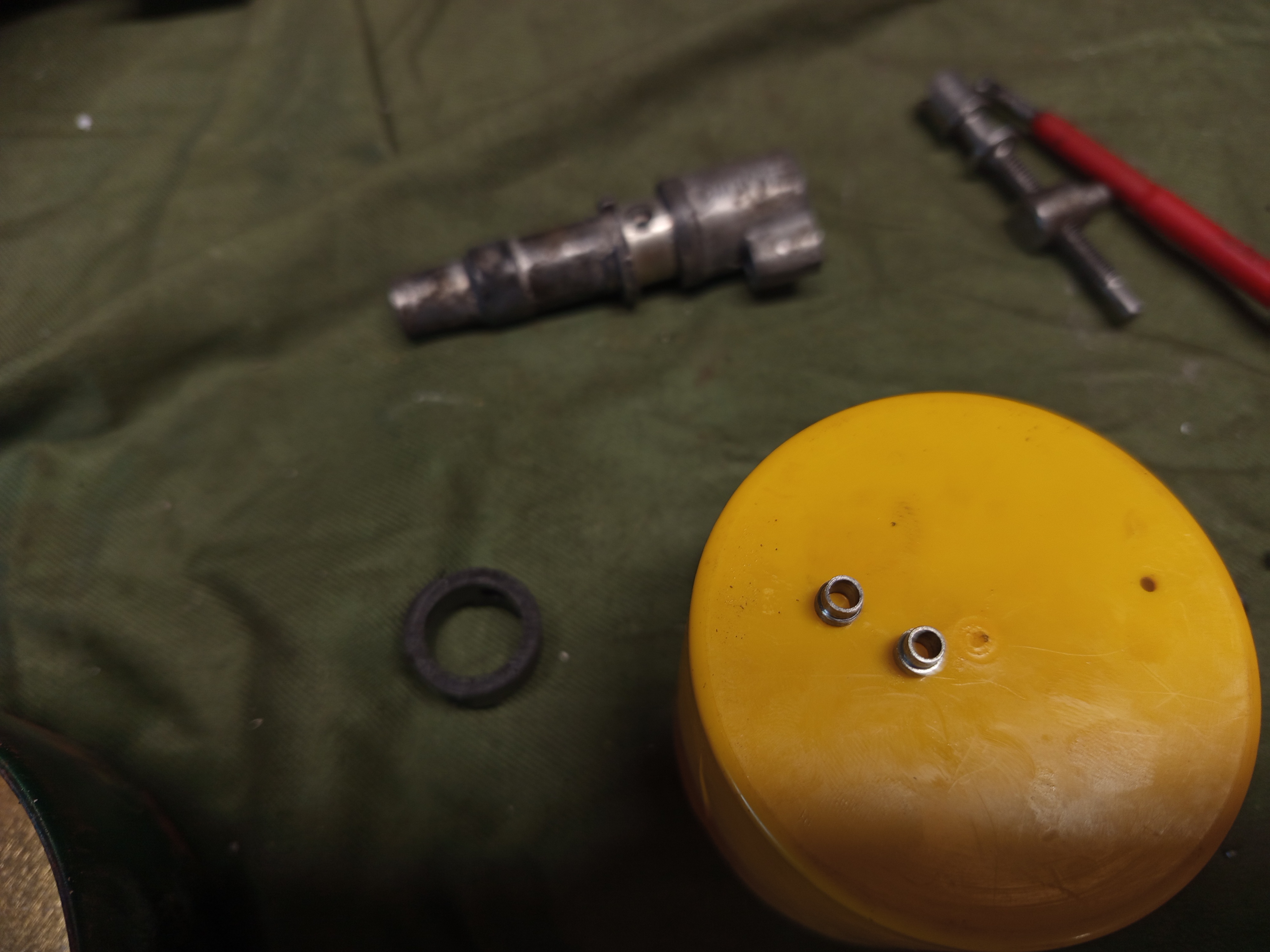 The 051’s oil pump has two small bushings (number 10 on the diagram below) that holds the the rubber seal in place and this is where the oil is pumped through. When I removed the old rubber ring one of those bushings fell off, and disappeared in the black hole under the bench. This is such a small part that it’s basically impossible to find it on the shop floor. Googling the item number you could buy this, but paying the shipping from abroad, and waiting for it to arrive is not really reasonable when I can remake it.