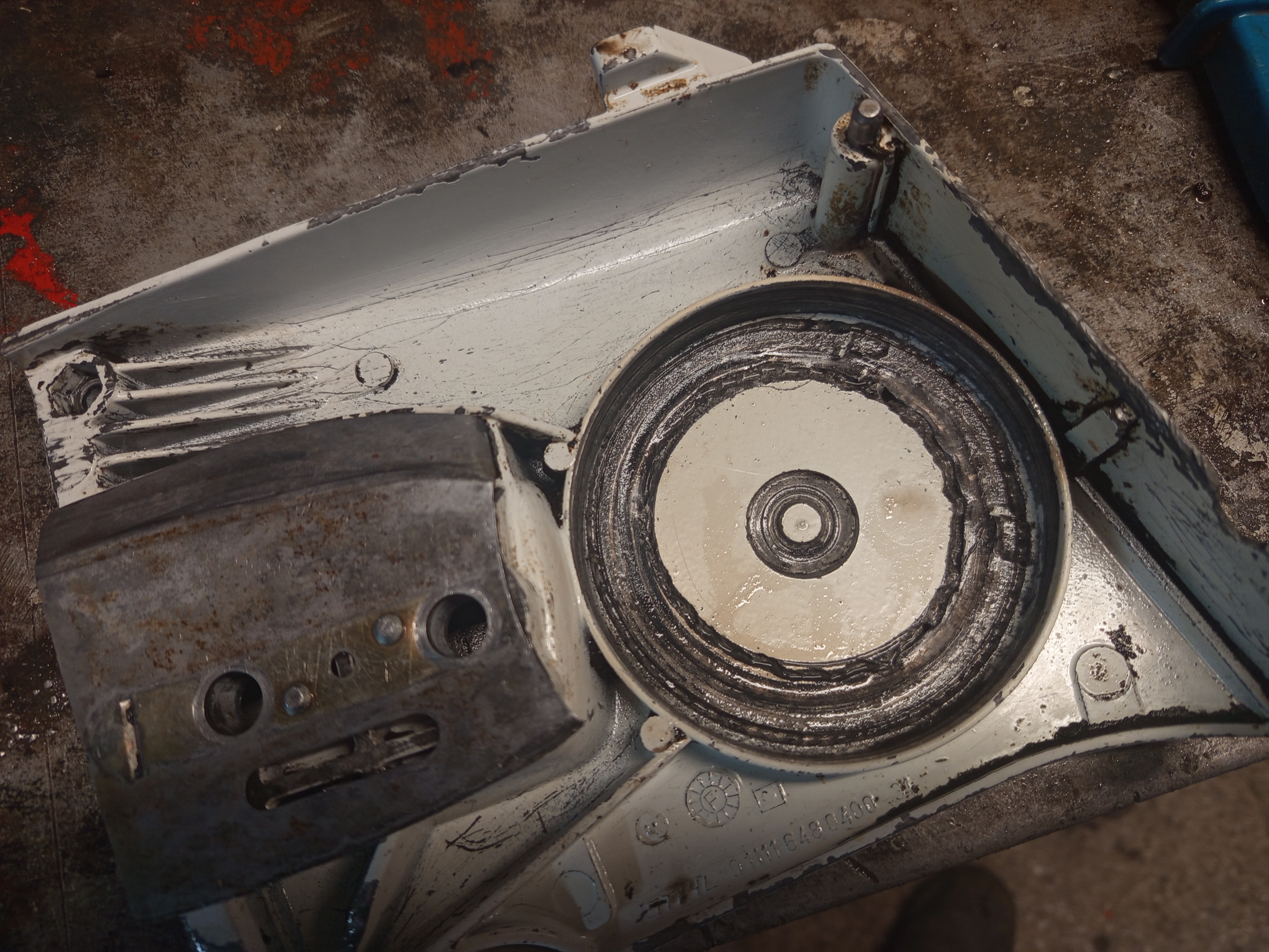 Of course it’s a work machine, and has many scratches and dings, removing them is totally unnecessary for a chainsaw IMO, the only damage that looked bad is on the clutch cover. It looks like the clutch unwound and machined out the material, and thinned it so much that there were some small holes on it.